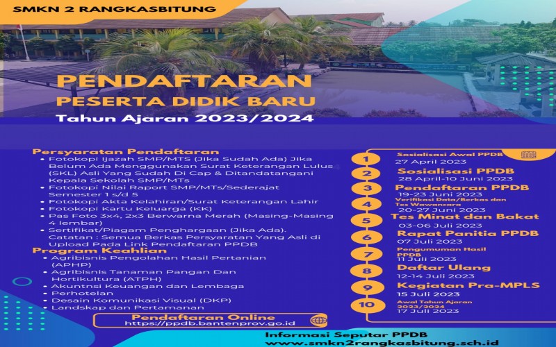 Hallo Sobat SMP/MTs Sederajat ???.Admin Ada informasi nih untuk adik adik semua bahwa Penerimaan Peserta Didik Baru (PPDB) SMK Negeri 2 Rangkasbitung