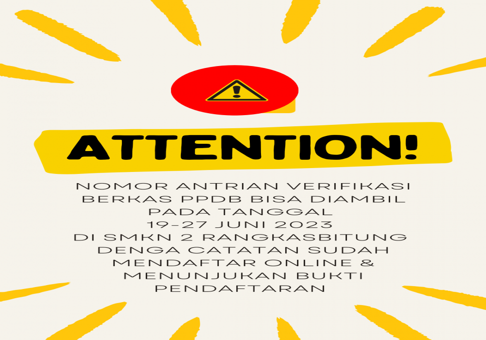 Halllo calon pendaftar peserta didik baru, SMP/MTs admin informasikan bahwa untuk pengambilan no antrian akan di laksanakan secara offline di SMKN 2 Rangkasbitung pada tanggal 19 - 27 juni 2023,