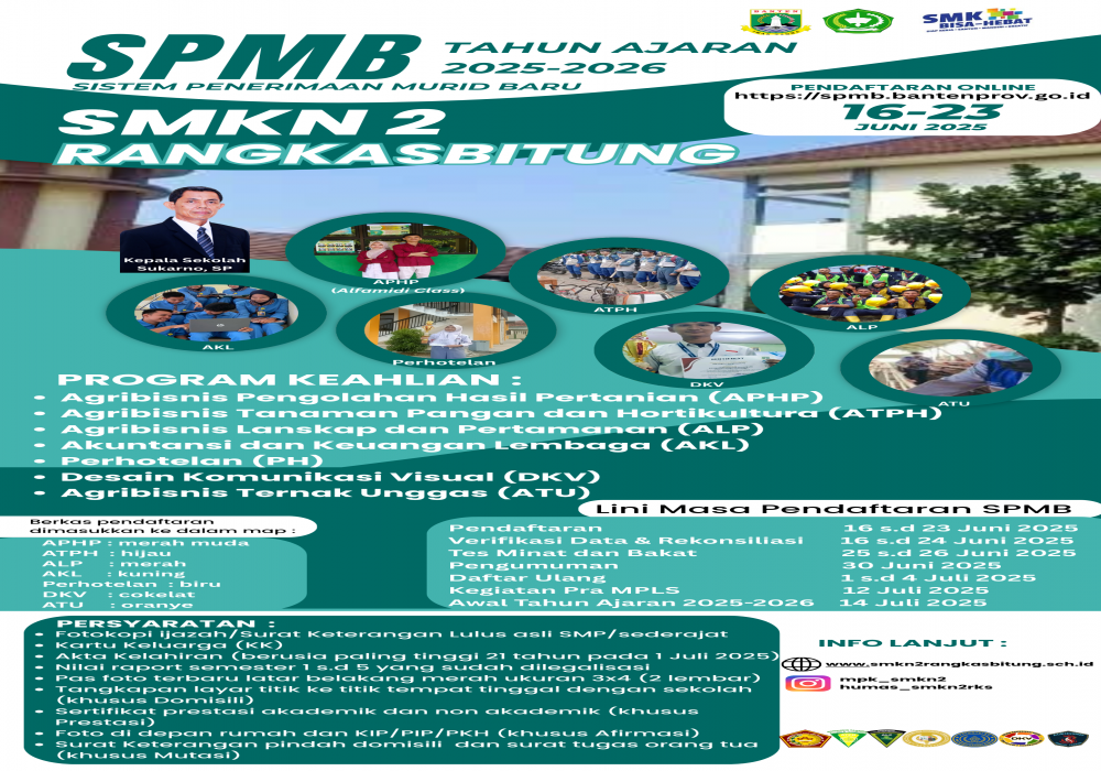 Kita akan memberikan Informasi Seputar SPMB 2025 di akun sosial media SMK Negeri 2 Rangkasbitung.